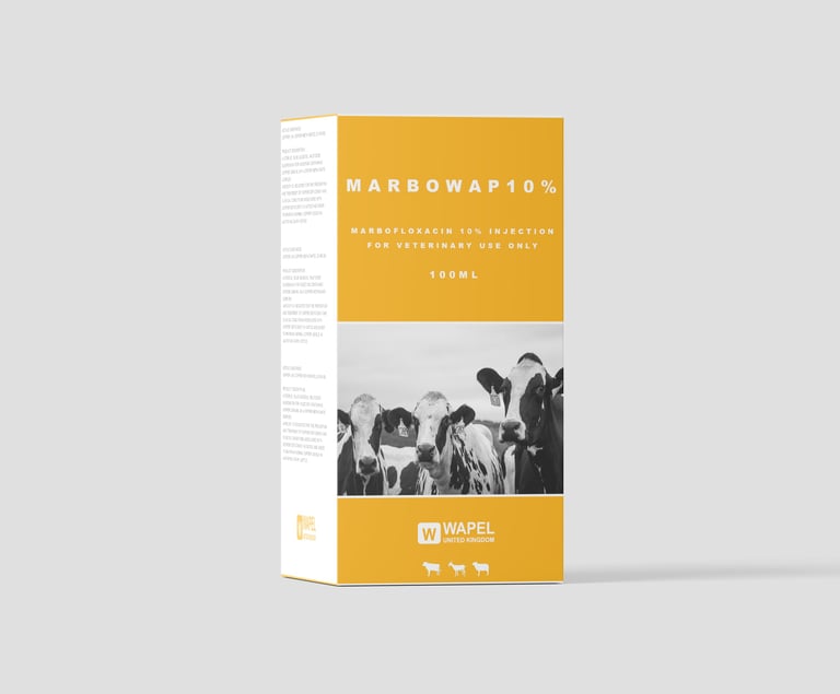 Disorders caused by germs sensitive to Marbofloxacin. • In calves and young cattle : Treatment of respiratory infections with strains sensitive to Pasteurella multocida, Pasteurella haemolytica and Mycoplasma bovis. • In pigs : Treatment of respiratory infections with strains sensitive to Actinobacillus pleuropneumoniae, Mycoplasma hyopneumoniae and Pasteurella multocida. Control the sensitivity of strains prior to use the product