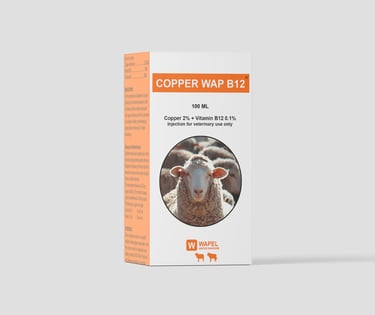 Copper Wap B12 is indicated for the prevention and treatment of copper deficiency with anemia and clinical conditions associated with copper deficiency in cattle and sheep.